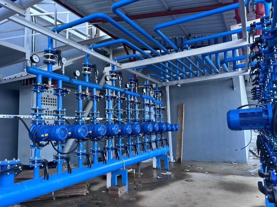 Le projet comprend la climatisation des salles d'essai du banc d'essai, l'intégration d'une tour de refroidissement pour la régulation de la température de l'eau moteur et un système de refroidissement du refroidisseur d'air de suralimentation. Il comprend également la réalisation d'une station de pompage de circulation et la conception complète de l'installation mécanique du système.