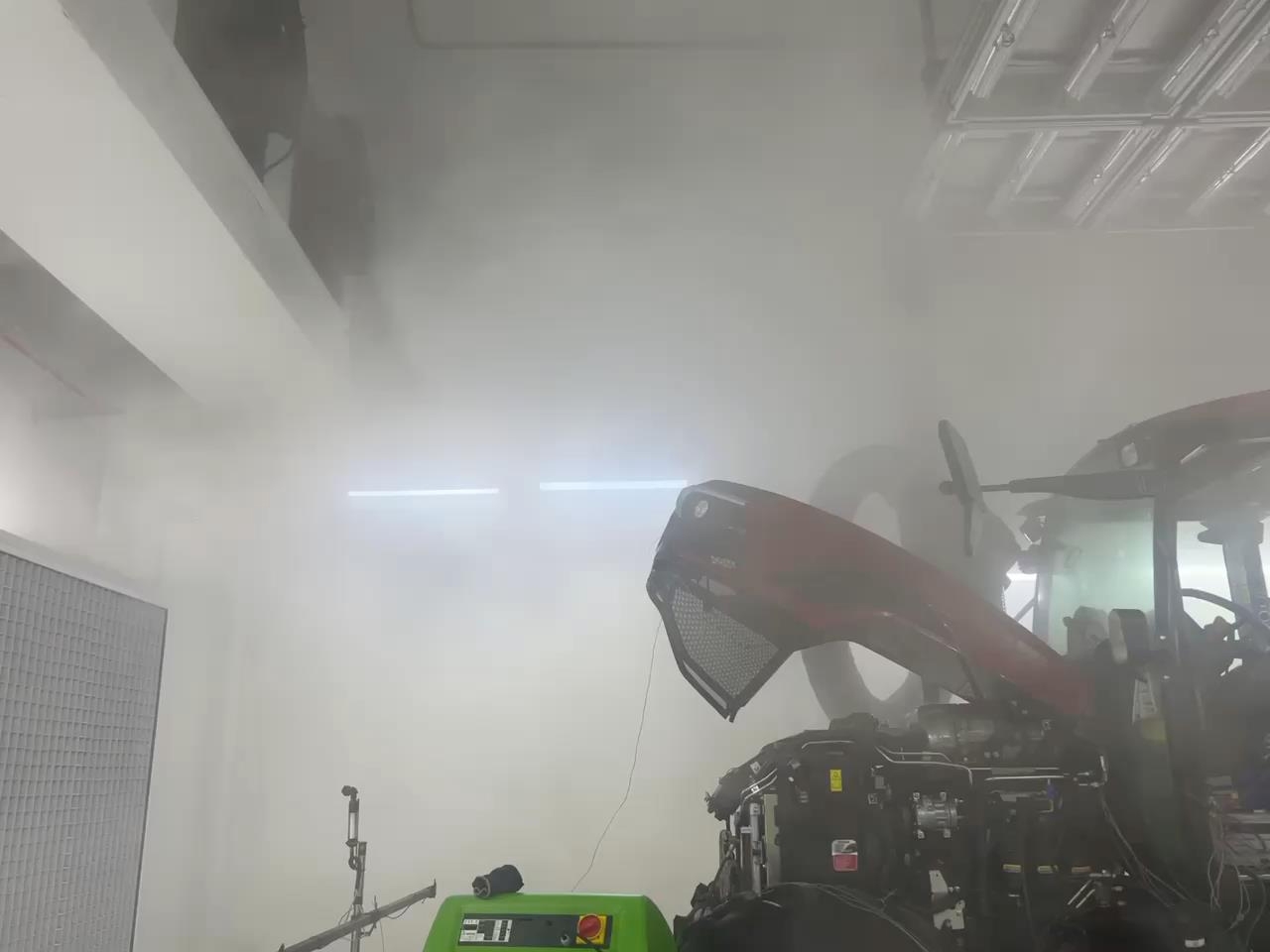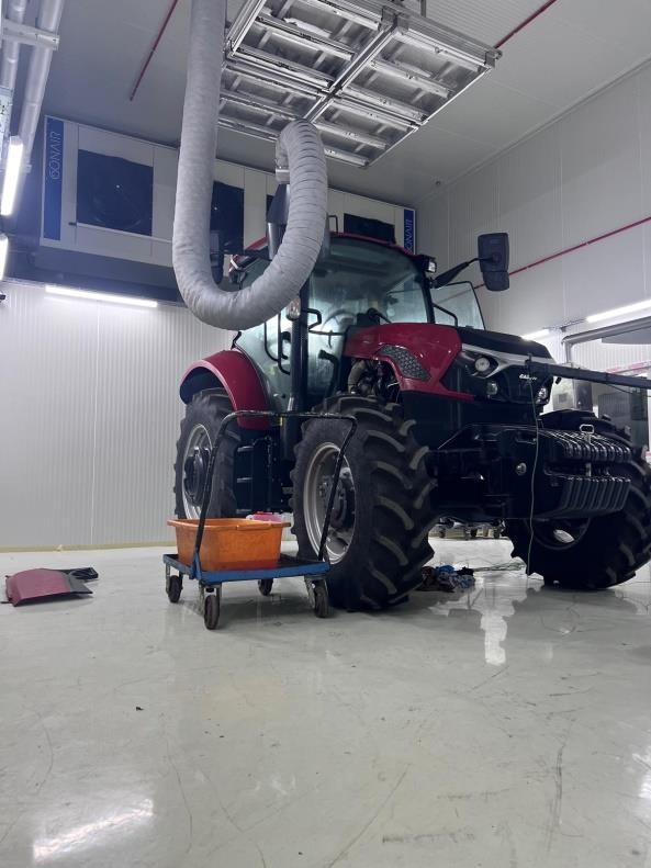 Le projet comprend des unités de conditionnement d'air en chambre climatique capables de maintenir une température ambiante d'essai comprise entre -40 °C et +60 °C et une humidité relative comprise entre 10 % et 95 % HR, tout en supportant les charges thermiques de tracteurs jusqu'à 250 kW. Le système intègre également des équipements tels qu'un simulateur de vent, un générateur de vapeur et un système de simulation solaire.